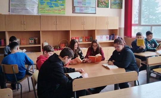 ДЕН НА ЧЕТЕНЕТО На 15 ноември 2024 г. за втори път отбелязваме Ден на четенето в България. Събитието се провежда по инициатива на Фондация „Четене“, Фондация „Детски книги“ и Сдружение „Книги и четене“. Тази година мотото на инициативата е: „Иновациите започват с четене!“. В дните от 11 до 15 ноември учениците на Основно училище ”Христо Ботев”, град Исперих, бяха посланици на четенето, като се включиха в организираните в класовете и в училищната библиотека четения на откъси от любими книги, обсъждания и разговори за тях, рисуваха героите от прочетените истории и правиха изложби от илюстрациите си. Първокласниците четоха кратък текст и писаха, довършваха и оцветяваха картинка по него, а Пипи Дългото Чорапче им беше на гости, за да им прочете приказка. Учениците от 3. клас пък четоха приказки в класните стаи, а четвъртокласниците четоха любимите си приказки и подариха книги на малките ти приятели от 4. група в детските градини „Мечо Пух” и „Първи юни”. Петокласниците четоха откъси от любима книга, донесена от домашната им библиотека, след което си размениха книгите и четоха любим цитат на приятелите си. А г-жа Александрова бе изписала красив цитат за четенето на бялата дъска. По повод 144 години от рождението на Йордан Йовков, майстор на късия разказ и на българската образна реч, седмокласниците от училището се докоснаха за пореден път до Йовковото творчество чрез прочит на разкази, прожекция на филм по негови произведения. Учениците от 6. клас се включиха в творчески занимания, четене, слушане и дискусии по различни произведения на Елин Пелин. В училищната библиотека прочетохме отново разказа „На браздата”. Младите читатели се убедиха, че са се случили промени и нови идеи и в областта на земеделието, от дървеното рало с животински впряг до модерната техника за обработване на земята днес. Нашите ученици са много любознателни, обичат да четат, защото знаят, че четенето има силата да обедини цялото общество около ВСИЧКО ТОВА, КОЕТО ВОДИ ДО ИНОВАТИВНИТЕ ПРОЦЕСИ ВЪВ ВСИЧКИ ОБЛАСТИ. А ТОВА СЕ СЛУЧВАТ С ДОБРИ УМЕНИЯ ЗА ЧЕТЕНЕ. МНОГО ЧЕТЕНЕ. |